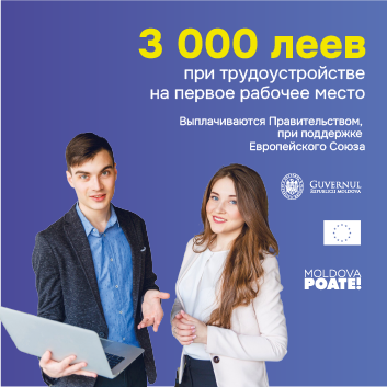 Молодые люди до 35 лет, которые впервые устраиваются на полную ставку в ключевых секторах, будут получать 3 000 леев в месяц в течение 12 месяцев. Поддержка оформляется полностью онлайн через платформы EVO и MCabinet.